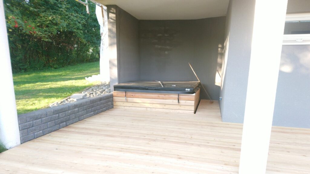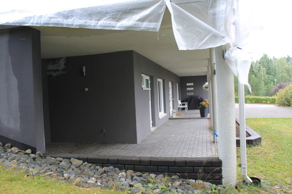 Omakotitalon parvekkeella